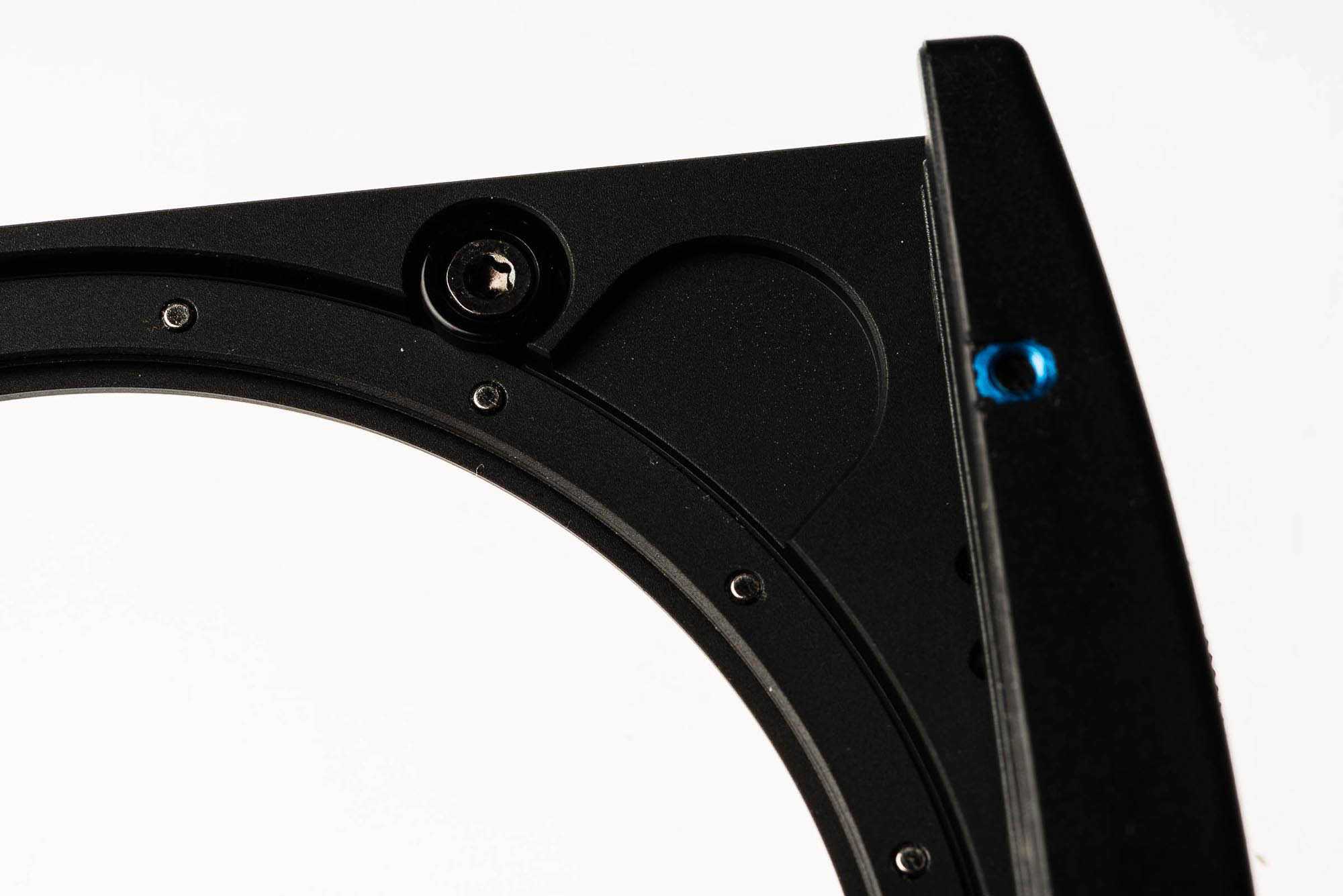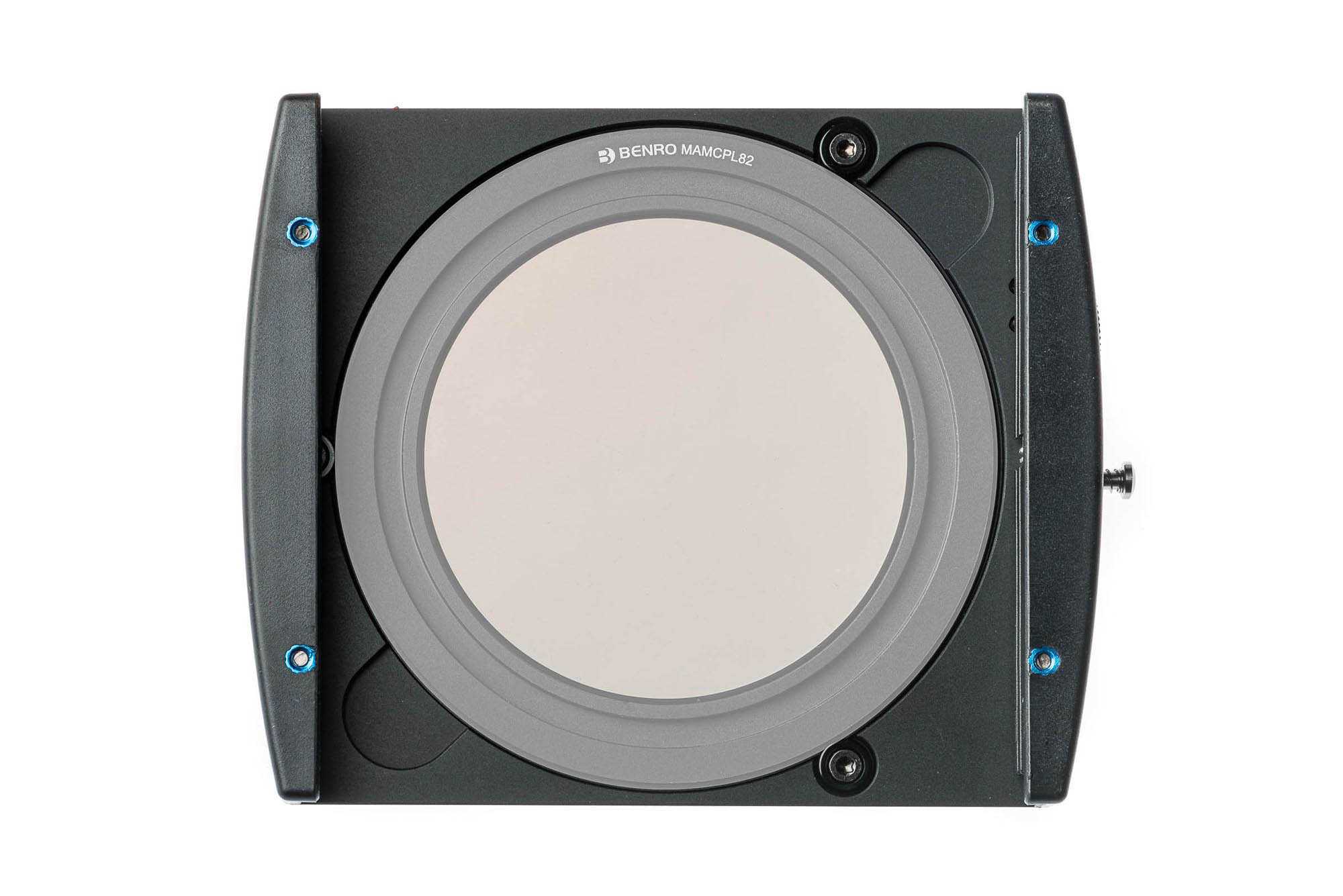 In de draaiende ring van de houder zijn 16 sterke magneetjes geplaatst. Deze houden een Benro Polarisatiefilter (MAMCPL82 of MAMCPL95) stevig op zijn plek. Dankzij de magneten en de uitsparingen in de houder is een polarisatiefilter nu zeer snel te plaatsen of te verwijderen. De ring met de magneetjes is op twee plekken te verdraaien: via de rubberen rupsband aan de linkerzijde, of via de ring zelf aan de achterzijde van de houder.