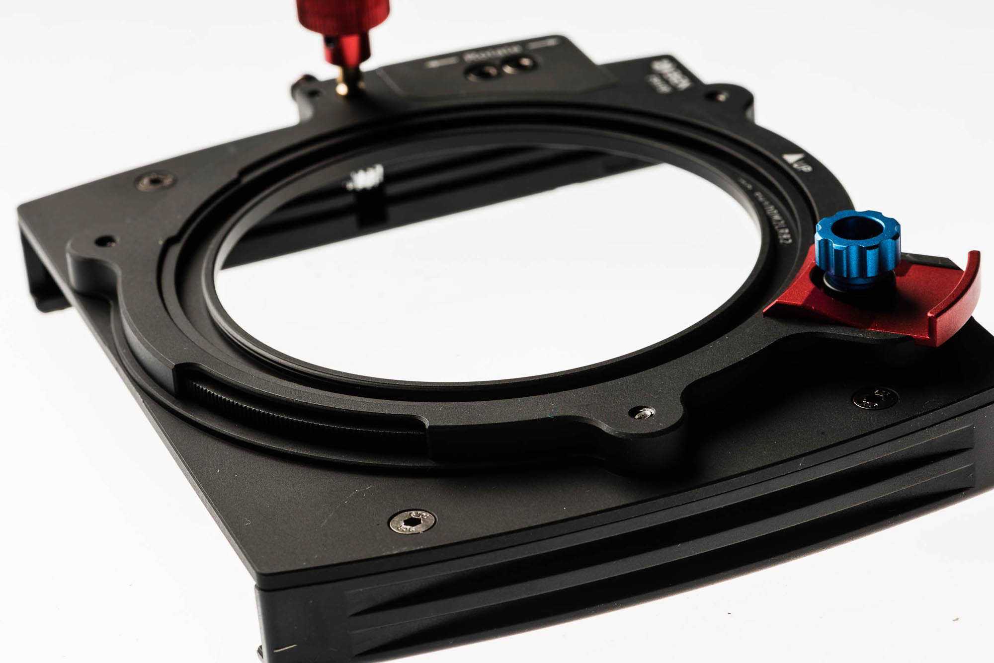 Het filterframe voor de verloopfilters (FR1015) heeft een vertanding waardoor dit filter snel en accuraat kan worden gepositioneerd met de rode draaiknop. De draaiknop heeft vier verschillende standen (Neutraal, A,B,C) waarmee het mogelijk is om elk verloopfilter apart te verplaatsen. De stand van de draaiknop wordt automatisch vergrendeld. Door het indrukken van een knop aan de zijkant kan een ander filterslot worden gekozen
