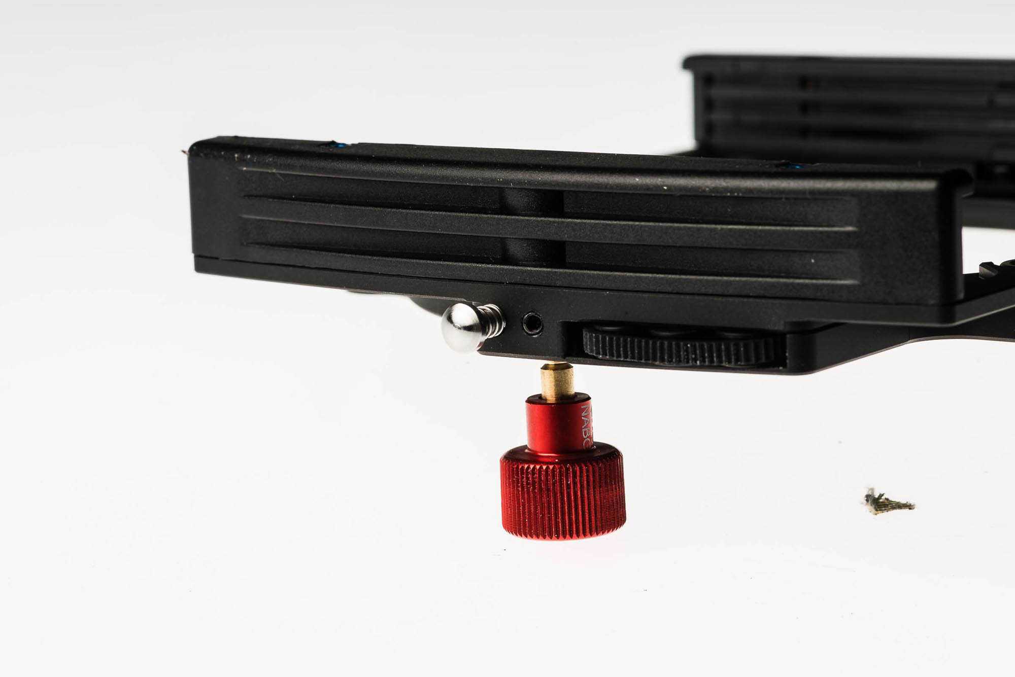 Met de blauwe draaiknop wordt de houder vast- of los gezet. Als de blauwe knop los is gedraaid, kan men door de geveerde rode schuif naar achteren te trekken de houder zeer snel verwijderen. Het bevestigen is zeer eenvoudig: de houder klikt vanzelf vast op de lensring. Dit systeem is daarmee sneller dan de meeste andere houders en ook veel veiliger dan constructies met een geveerd palletje aan de zijkant.