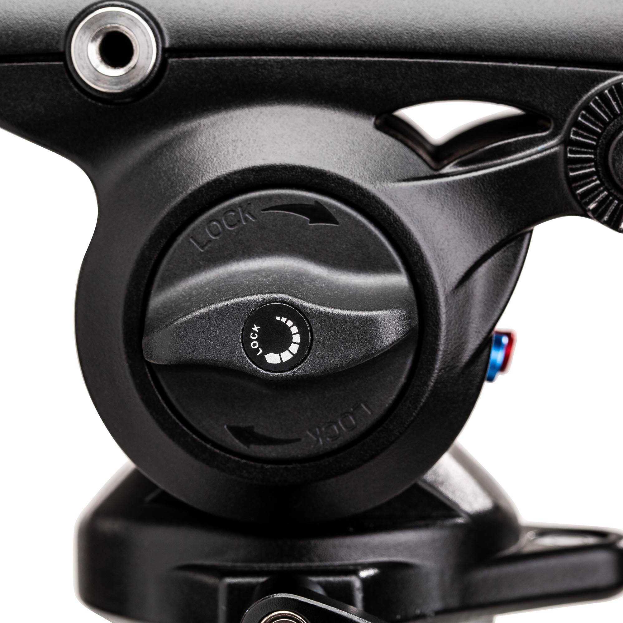De pan- en tiltas kunnen afzonderlijk worden vastgezet. Een tweestaps counterbalance zorgt er – bij de juiste balancering – voor dat de camera niet snel naar beneden kan bewegen.