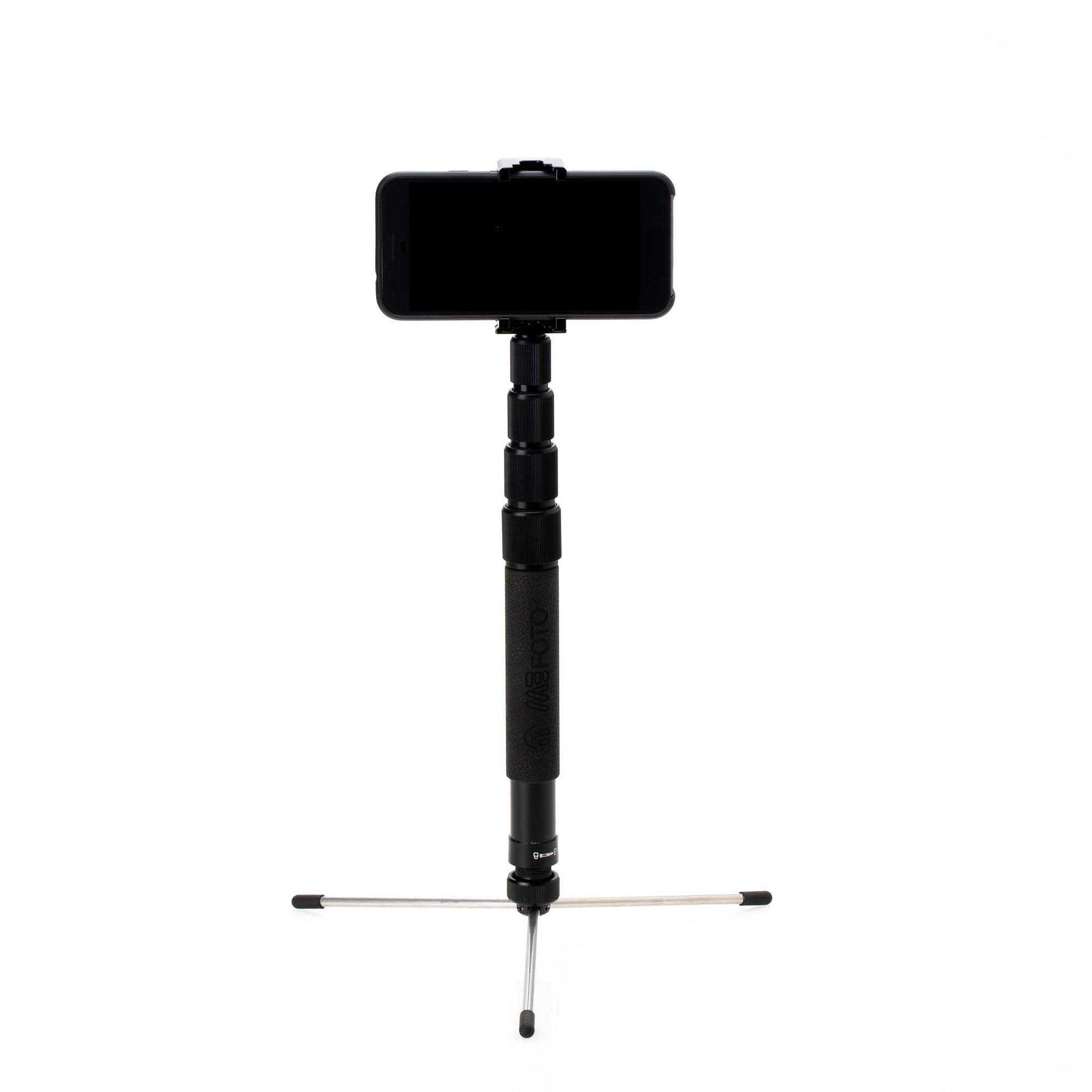 - De poot met de comfortabele rubber grip geeft voldoende houvast en bescherming tegen koude weersomstandigheden. Deze poot is ook snel, samen met de middenkolom, te transformeren naar een mooie monopod. Gebruik je alleen de middenkolom in combinatie met de smartphone klem, dan heb je een mooie selfie stick.