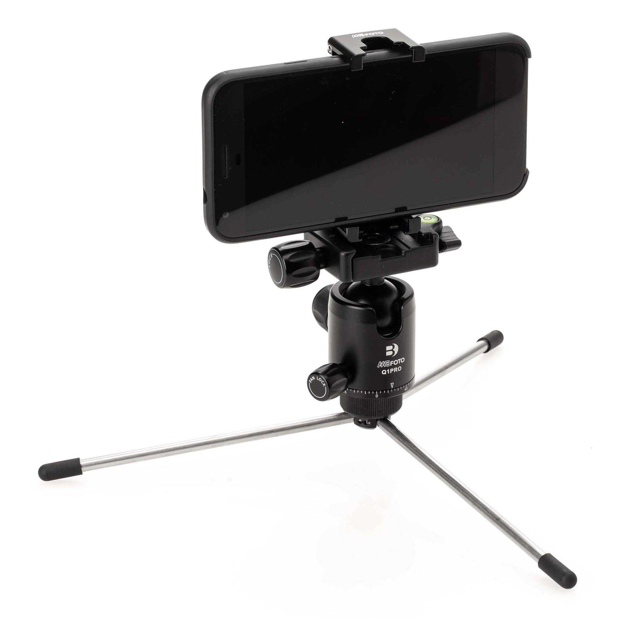 - Standaard wordt er een Arca-Swiss snelwisselplaat bij geleverd, die snel kan worden veranderd in een slimme smartphone houder, inclusief cold shoe mount. Je kunt dus in een handomdraai wisselen tussen fotografie of het maken van filmpjes voor je social media.