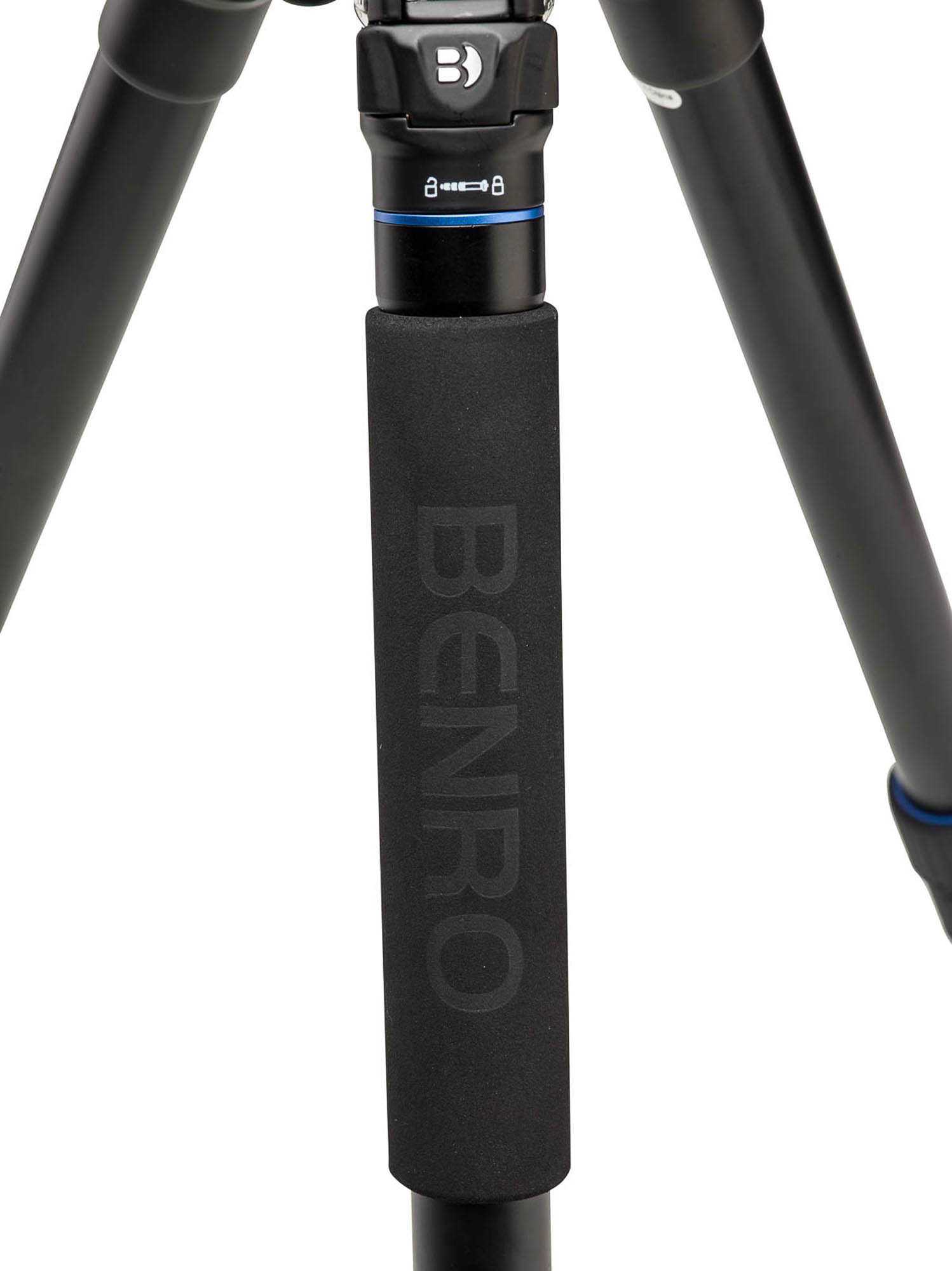De statiefpoten hebben een Twistlock-vergrendeling waarmee u snel en trefzeker de hoogte van het statief kunt veranderen, terwijl de rubberen fixeerringen stof en water buiten houden. Elke statiefpoot heeft een rubberen voetje waardoor het statief ook op gladde oppervlakken stabiel staat.