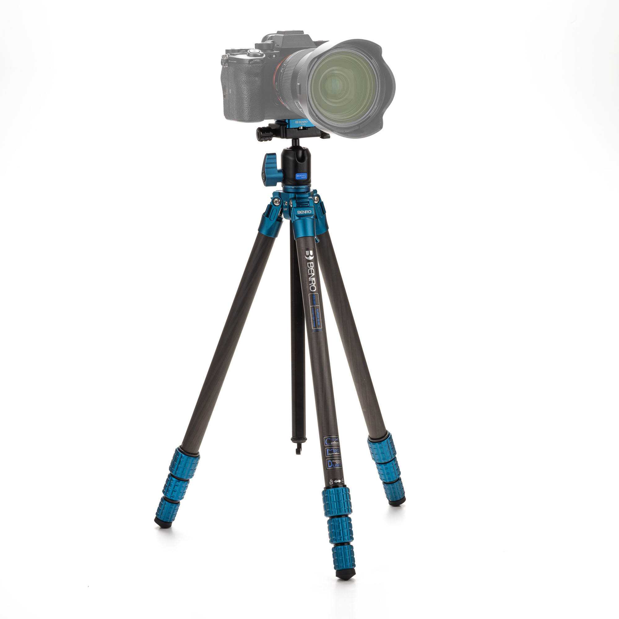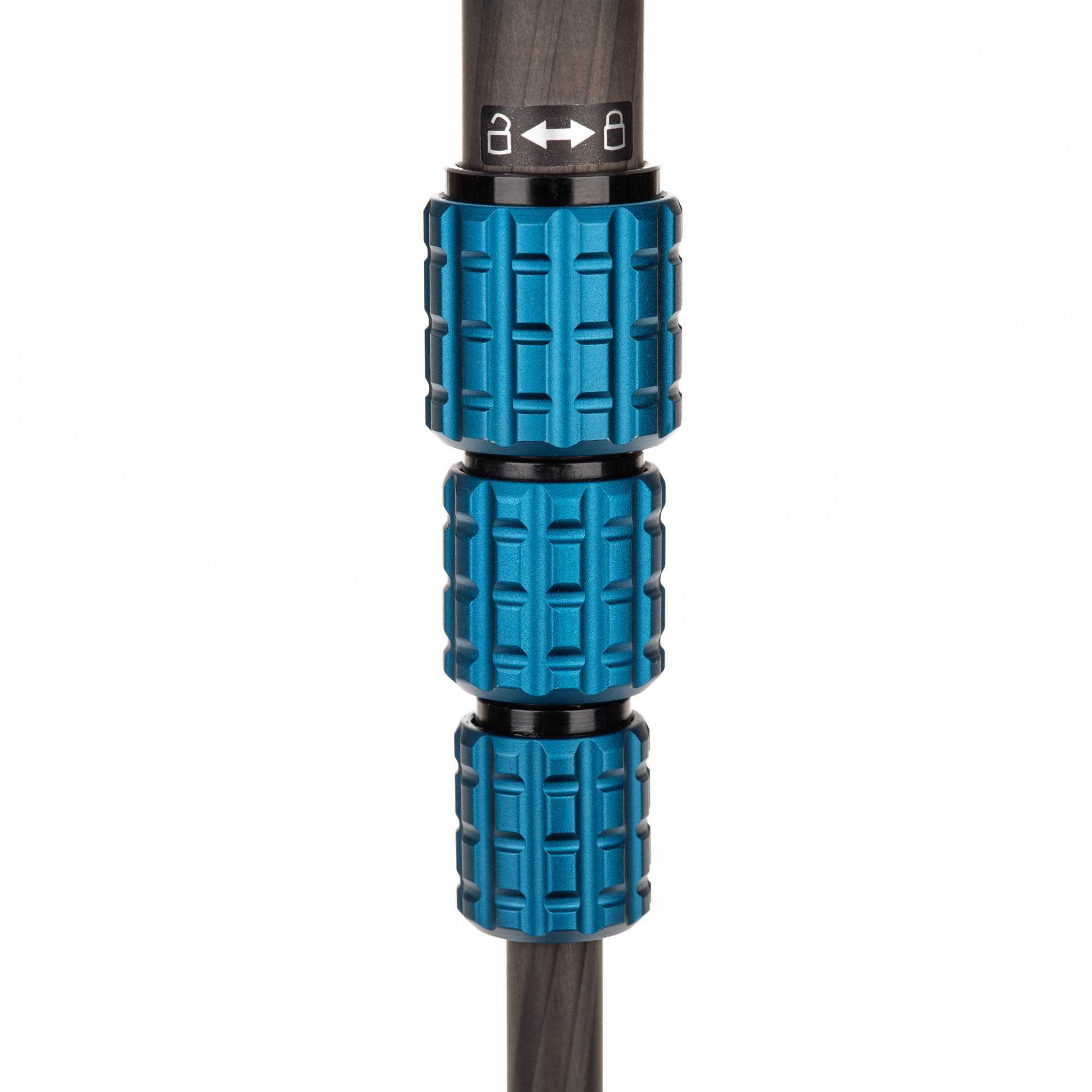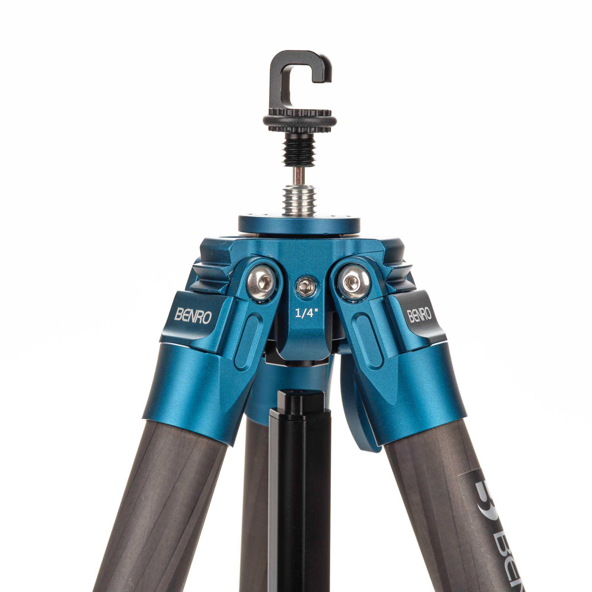De statiefpoten hebben geanodiseerde aluminium draaisluitingen die met een snelle halve draai te vergrendelen en ontgrendelen zijn. De gegroefde middenkolom voorkomt draaien tijdens gebruik en kan worden omgekeerd voor opnamen dicht bij de grond. Onder de middenkolom bevindt zich een haak voor extra gewicht bij winderige omstandigheden. De rubberen voetjes van het statief zijn vast gemonteerd.